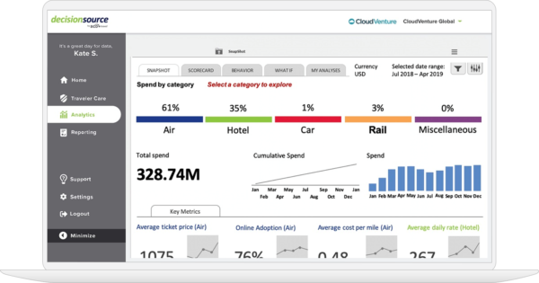 Moderne Geschäftsreiseprogramme haben Einfluss auf viele Bereiche innerhalb eines Unternehmens. Mit DecisionSource® bekommen Sie ein Tool, das Ihnen hilft, die Vielzahl der anfallenden Aufgaben zu bewältigen. Die Plattform umfasst eine Reihe von Funktionsbereichen, z. B. zur Erzielung von Einsparungen im Geschäftsreiseprogramm, zur besseren Erfüllung der Fürsorgepflicht und zur Steigerung der Richtlinienkonformität.